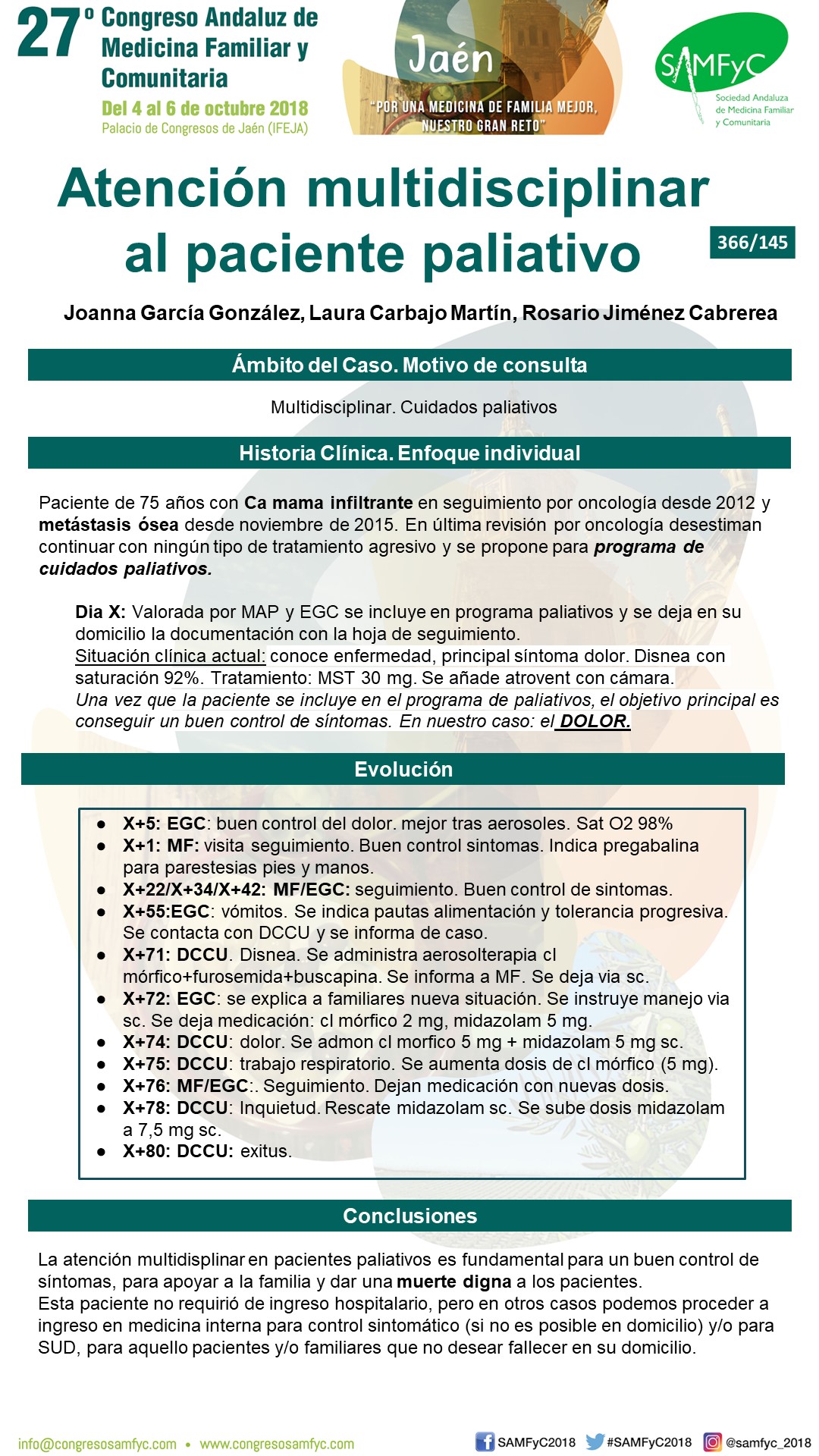 La atención multidisplinar en pacientes paliativos es fundamental para un buen control de sintomas, para apoyar a la familia y dar una muerte digna a los pacientes.