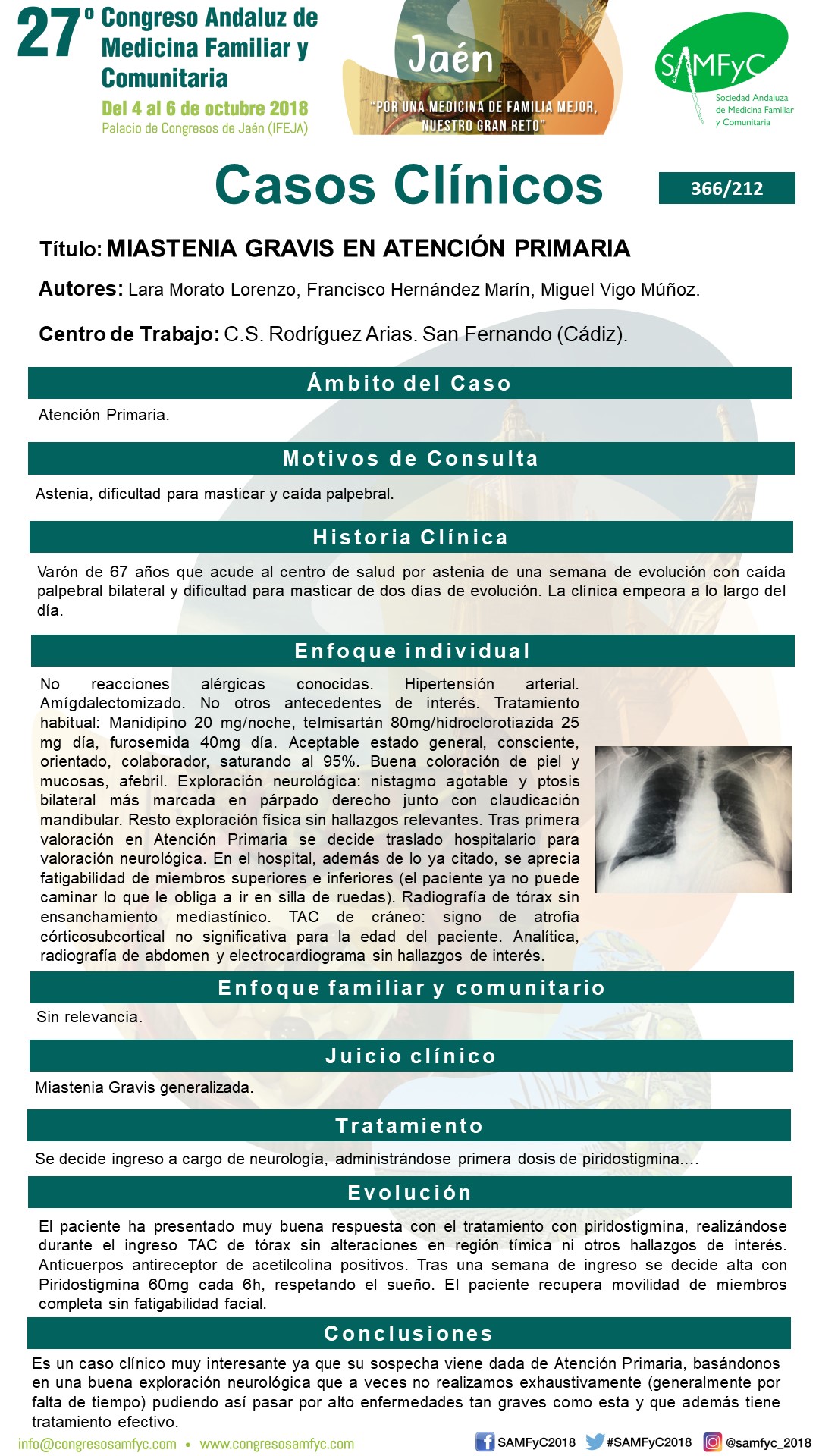 Es un caso clínico muy interesante ya que su sospecha viene dada de Atención Primaria, basándonos en una buena exploración neurológica que a veces no realizamos exhaustivamente (generalmente por falta de tiempo) pudiendo así pasar por alto enfermedades tan graves como esta y que además tiene tratamiento efectivo.