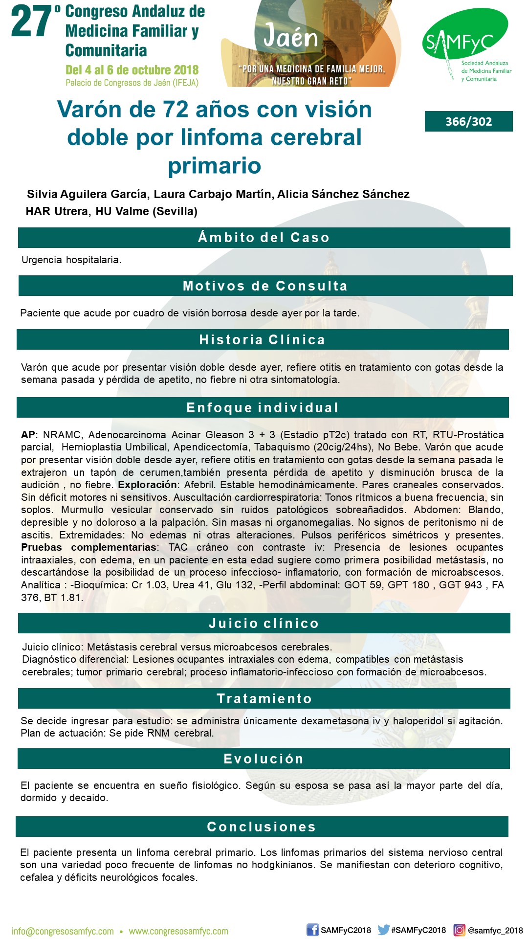 El paciente presenta un linfoma cerebral primario
