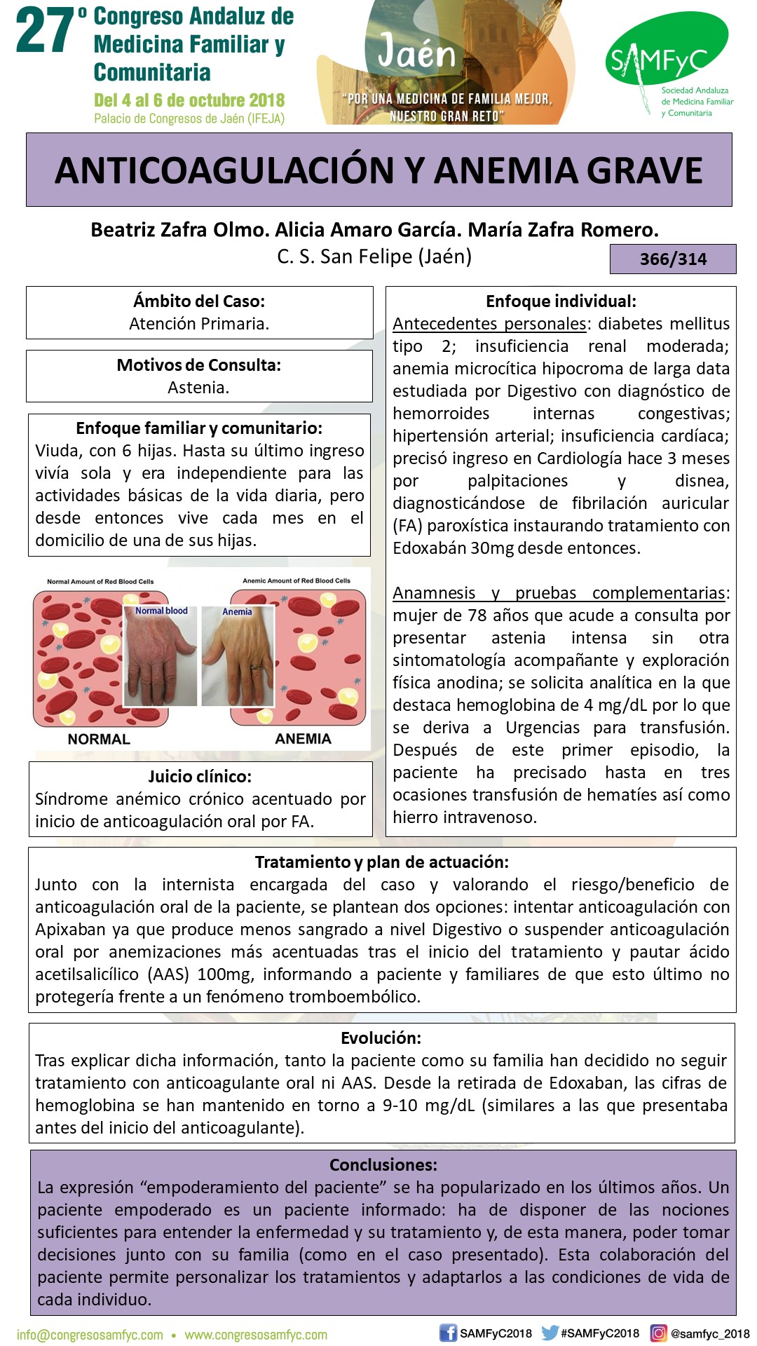 Síndrome anémico crónico acentuado por inicio de anticoagulación oral por FA.