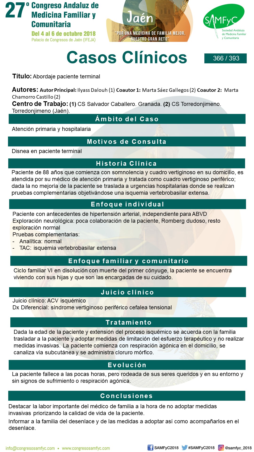 Destacar la labor importante del médico de familia a la hora de no adoptar medidas invasivas priorizando la calidad de vida de la paciente