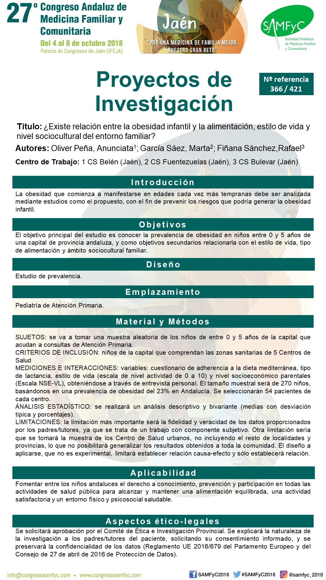 El objetivo principal del estudio es conocer la prevalencia de obesidad en niños entre 0 y 5 años de una capital de provincia andaluza, y como objetivos secundarios relacionarla con el estilo de vida, tipo de alimentación y ámbito sociocultural familiar.