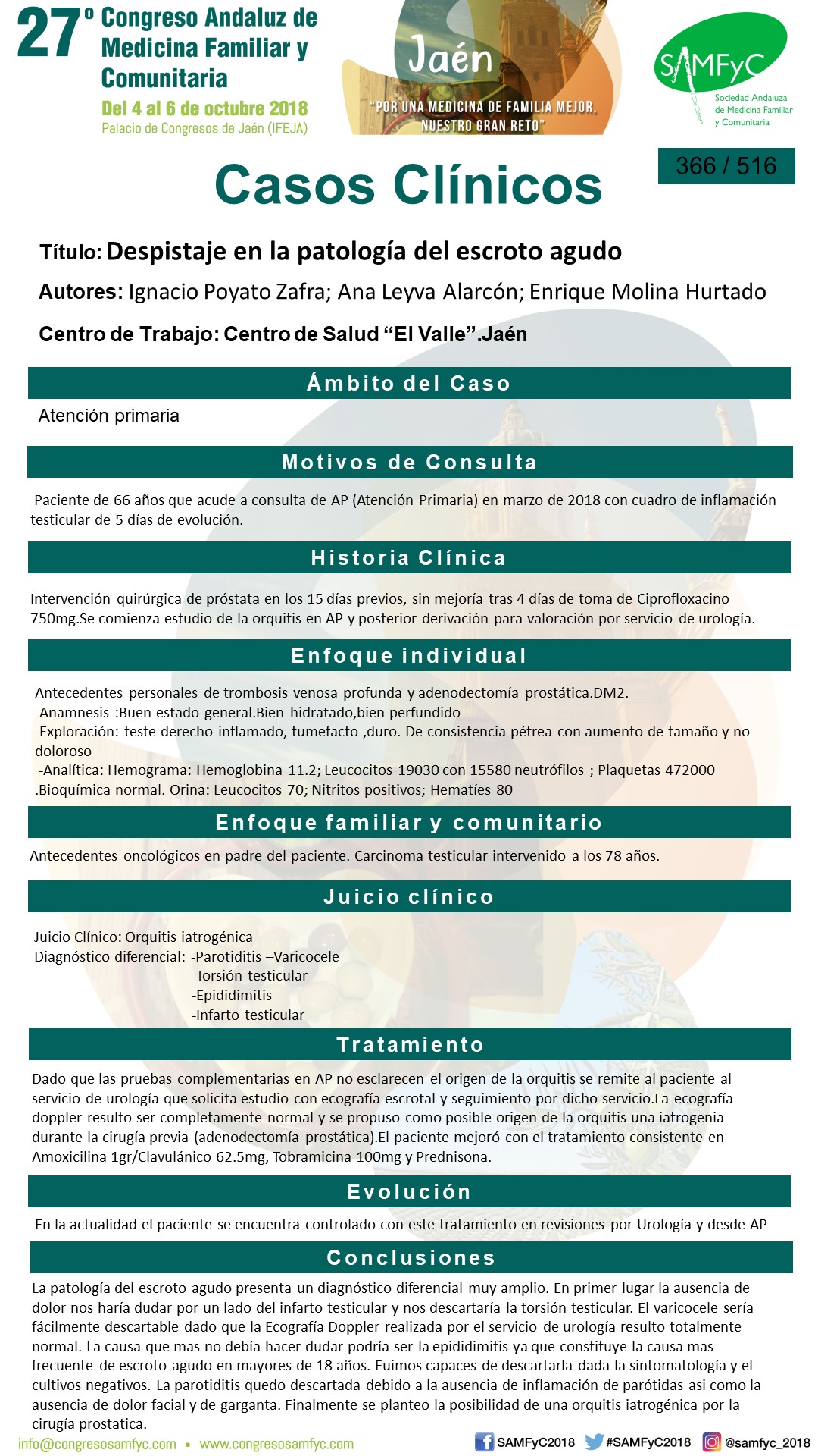 Paciente de 66 años que acude a consulta de AP (Atención Primaria) en marzo de 2018 con cuadro de inflamación testicular de 5 días de evolución.