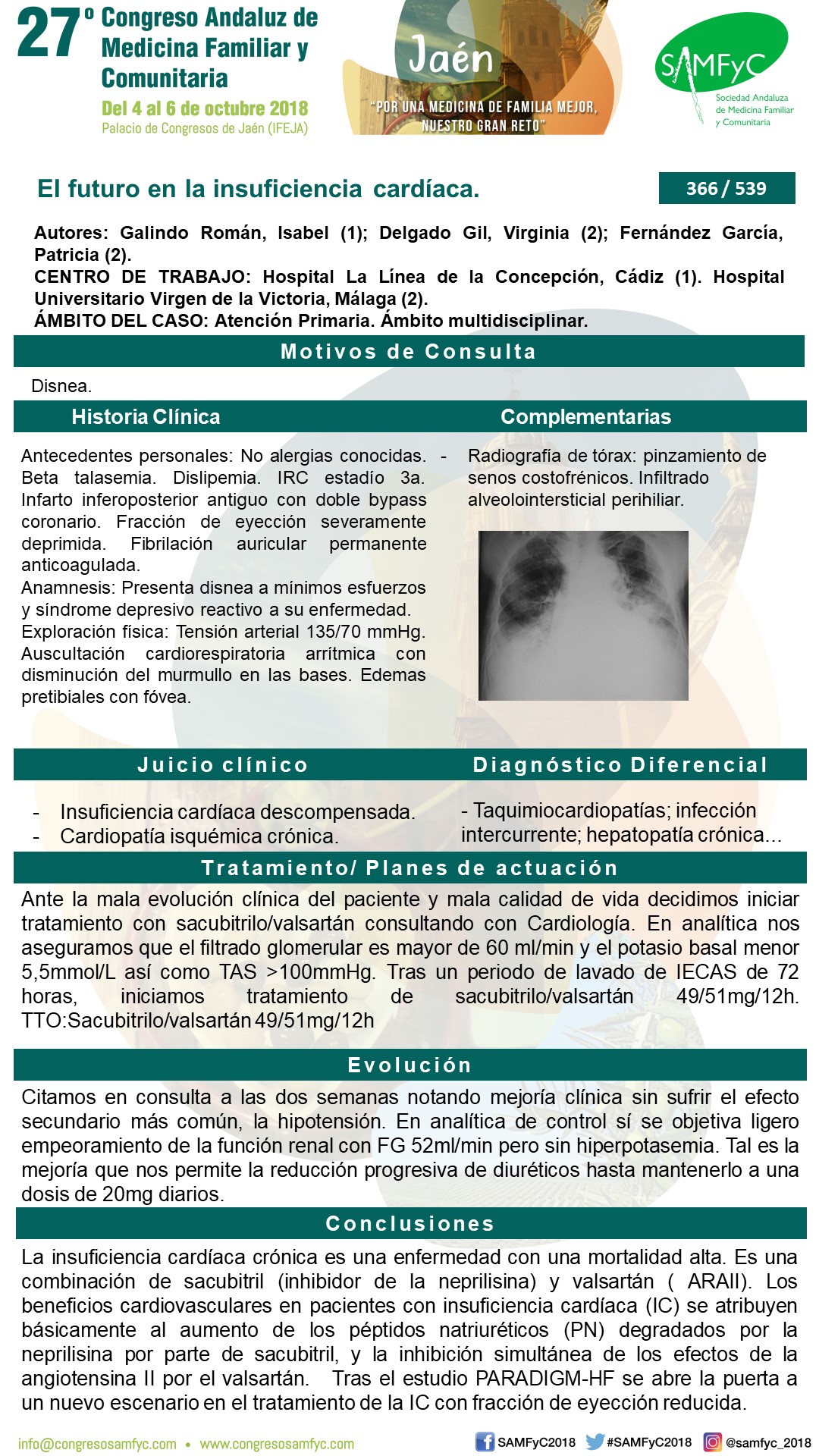 Anamnesis: Presenta disnea a mínimos esfuerzos y síndrome depresivo reactivo a su enfermedad.