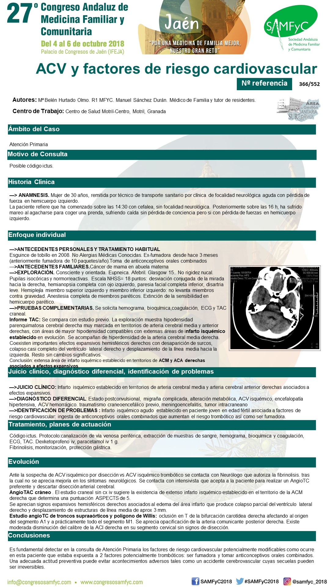 Es fundamental detectar en Atención Primaria los factores de riesgo cardiovascular modificables como el tabaquismo y los anticonceptivos orales combinados. Una adecuada actitud preventiva puede evitar acontecimientos adversos como un accidente cerebrovascular cuyas secuelas pueden ser irreversibles.