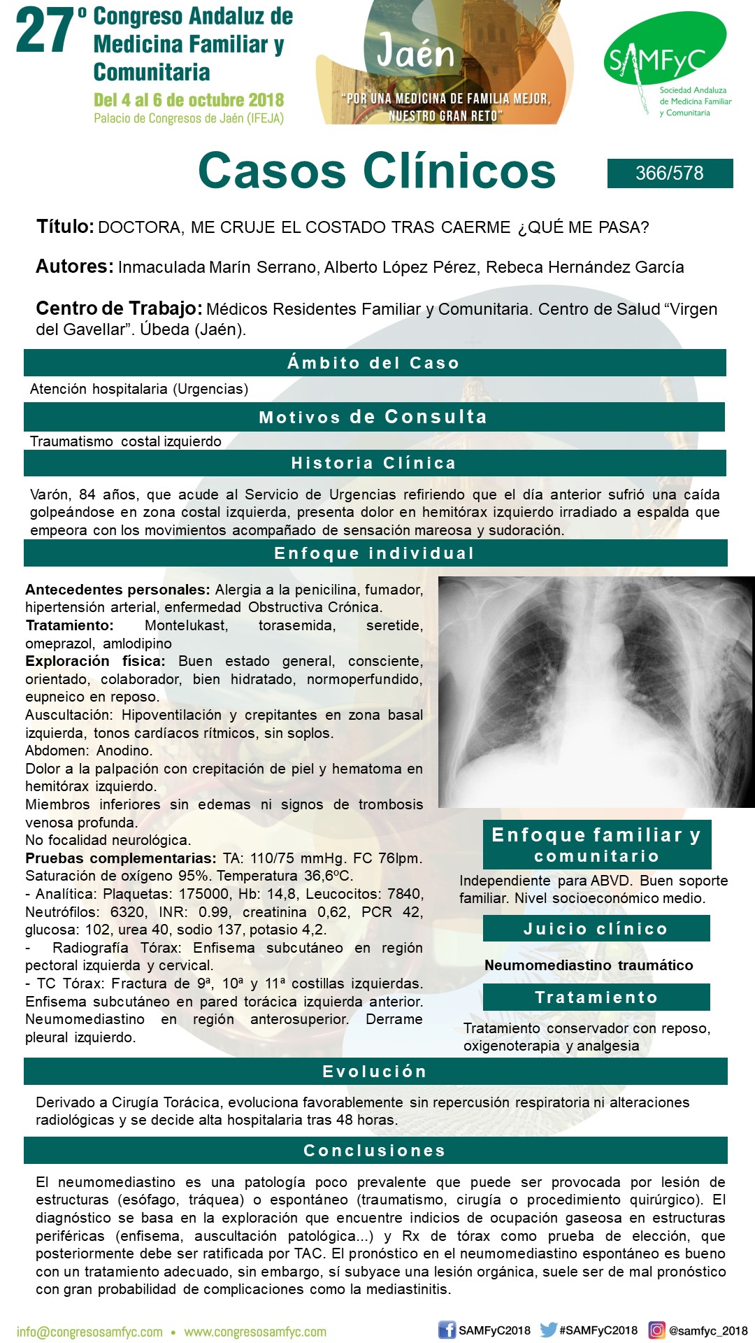 Varón, 84 años, que acude al Servicio de Urgencias refiriendo que el día anterior sufrió una caída golpeándose en zona costal izquierda, presenta dolor en hemitórax izquierdo irradiado a espalda que empeora con los movimientos acompañado de sensación mareosa y sudoración.