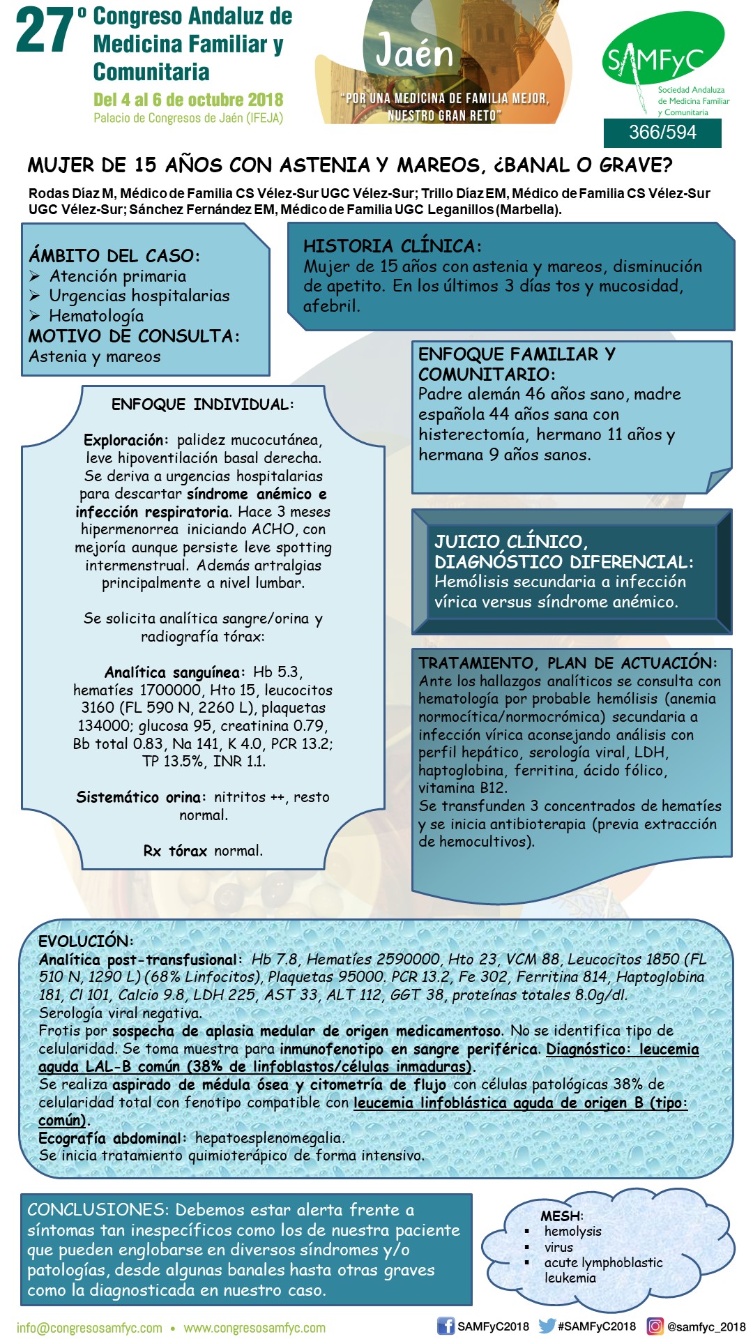Mujer de 15 años con astenia y mareos, disminución de apetito. En los últimos 3 días tos y mucosidad, afebril.
