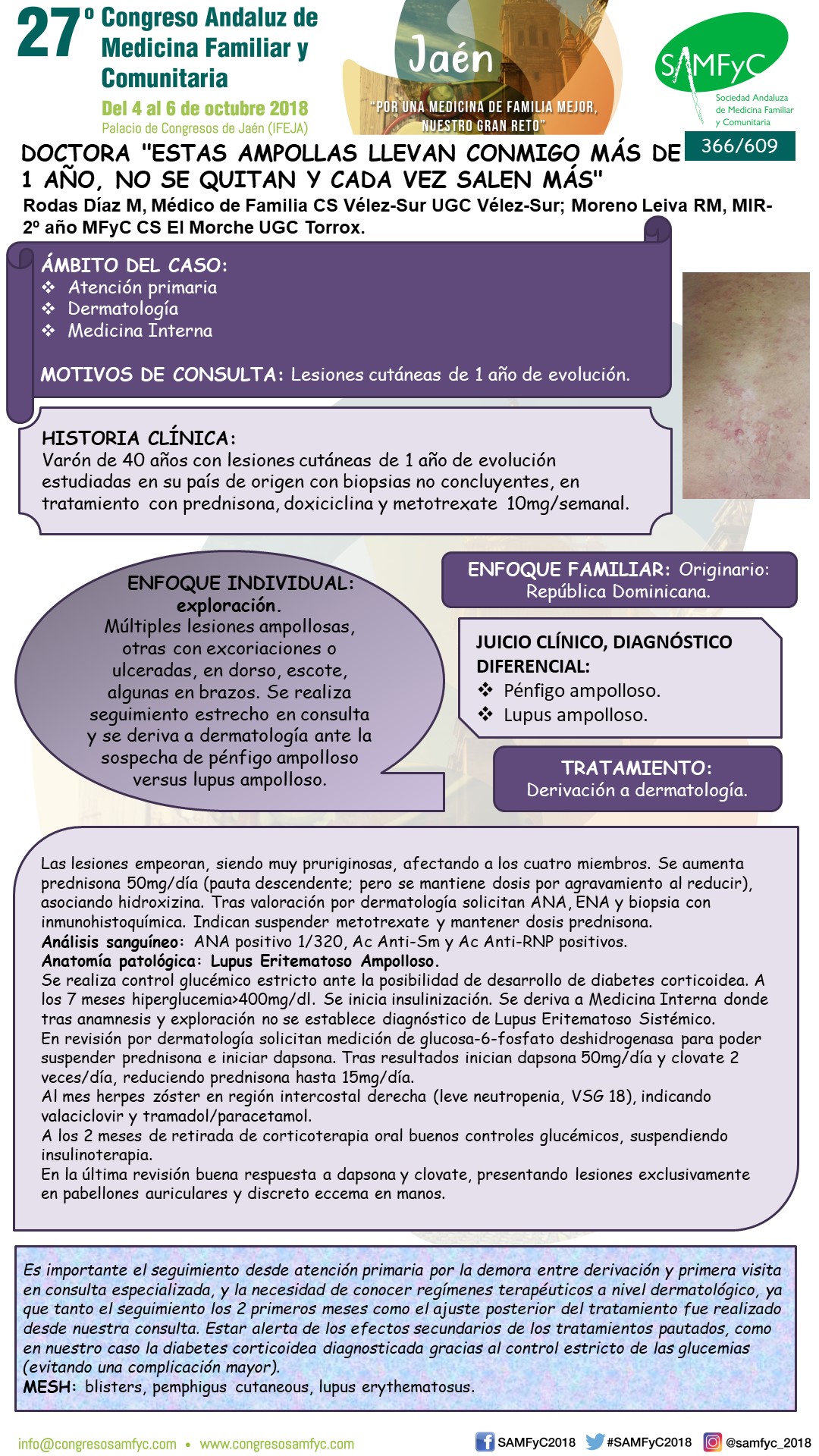 Es importante el seguimiento desde atención primaria por la demora entre derivación y primera visita en consulta especializada, y la necesidad de conocer regímenes terapéuticos a nivel dermatológico, ya que tanto el seguimiento los 2 primeros meses como el ajuste posterior del tratamiento fue realizado desde nuestra consulta. Estar alerta de los efectos secundarios de los tratamientos pautados, como en nuestro caso la diabetes corticoidea diagnosticada gracias al control estricto de las glucemias (evitando una complicación mayor).