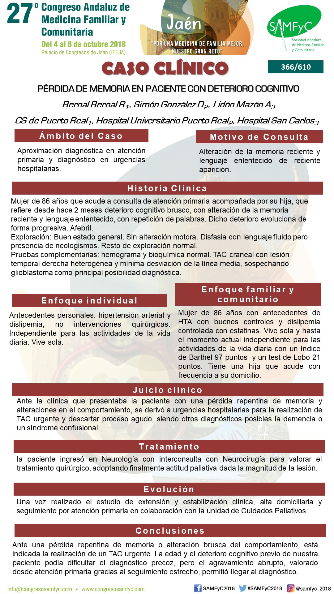 Ante una pérdida repentina de memoria o alteración brusca del comportamiento, está indicada la realización de un TAC urgente. La edad y el deterioro cognitivo previo de nuestra paciente podía dificultar el diagnóstico precoz, pero el agravamiento abrupto, valorado desde atención primaria gracias al seguimiento estrecho, permitió llegar al diagnóstico.
